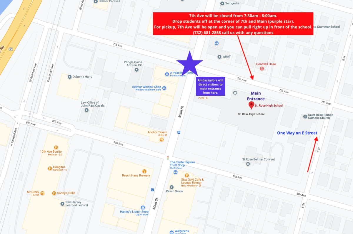 All visitors must enter our building through the main entrance on 7th Avenue. Due to the arrival of school buses and our student body, the area on 7th Avenue in front of the school will be closed to through traffic. We encourage you to drop students off at the corner of 7th and Main Street