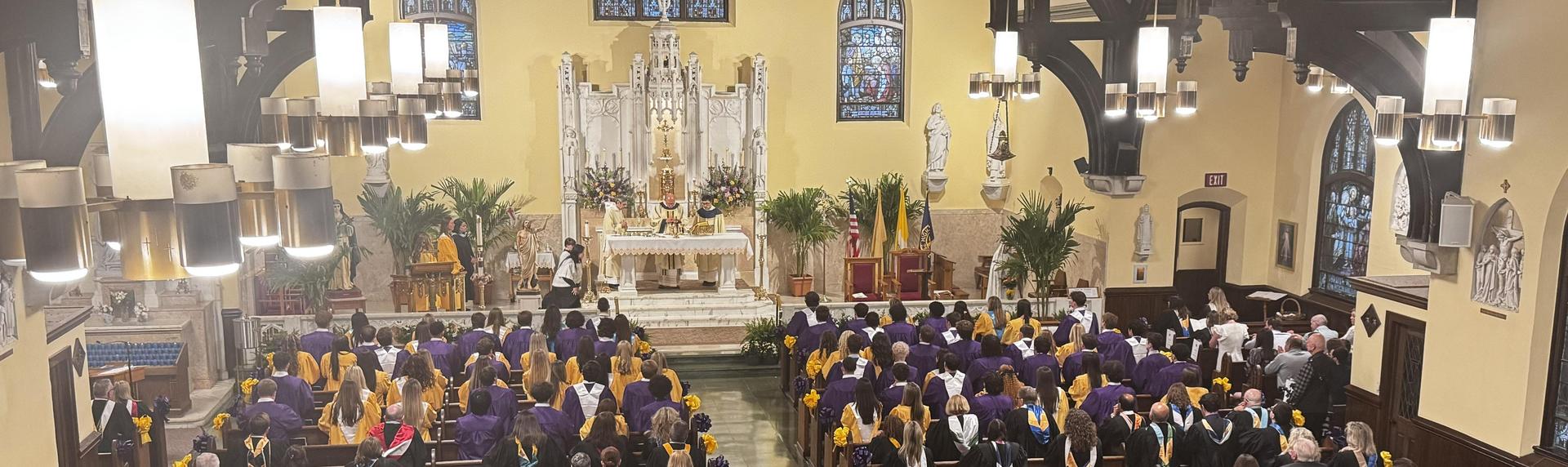 To encourage our students to be leaders of the future, we develop in them a deep spirituality that grounds them throughout their lives. SRHS students come to know and deepen a heartfelt knowledge of God, a God who knows them intimately and loves them unconditionally. SRHS students learn the principles of our Catholic faith and are challenged to incorporate these values into their daily lives. Our curriculum is infused with the concepts of peace, justice, and respect for human life. Through retreats, liturgies, and ongoing service experiences, the spiritual lives of individual students and teachers as well as the entire school community are enriched.